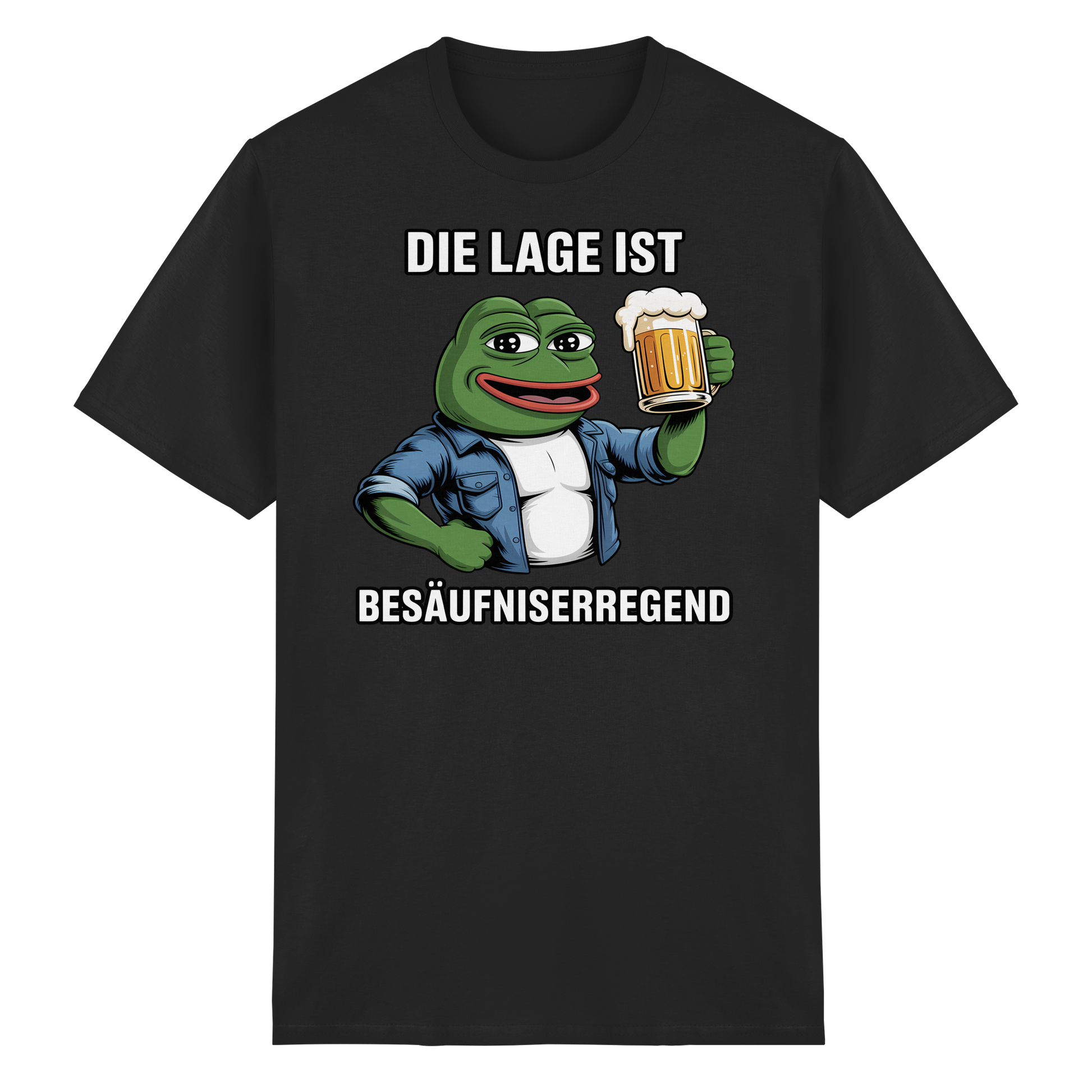 Limitierte Auflage, nur online erhältlich. Perfekt für den nächsten geselligen Abend. Kaufe jetzt dein "Die Lage ist Besäufniserregend" T-Shirt und sei der Star jeder Party!